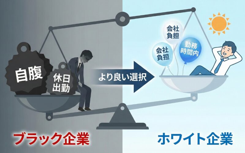 ホワイト企業で働いている人は、この45万円と360時間を「もらいながら」スキルアップしているのです。