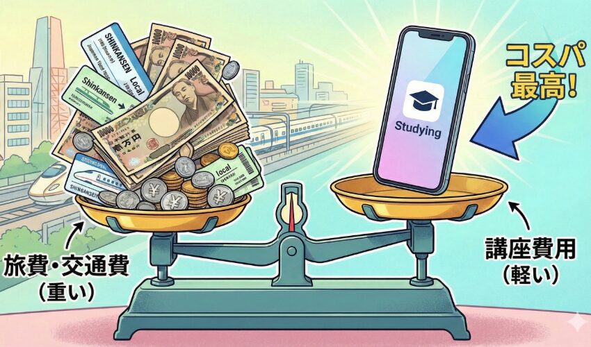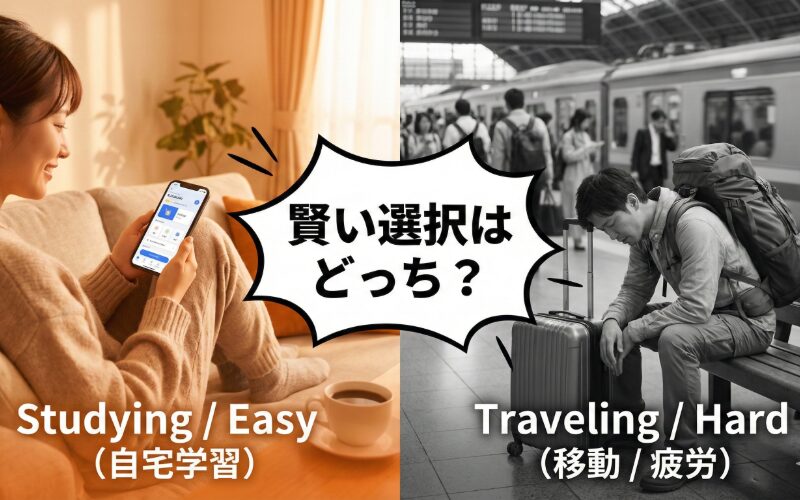 | 比較 | 遠征受験(独学) | 地元受験(スタディング) |