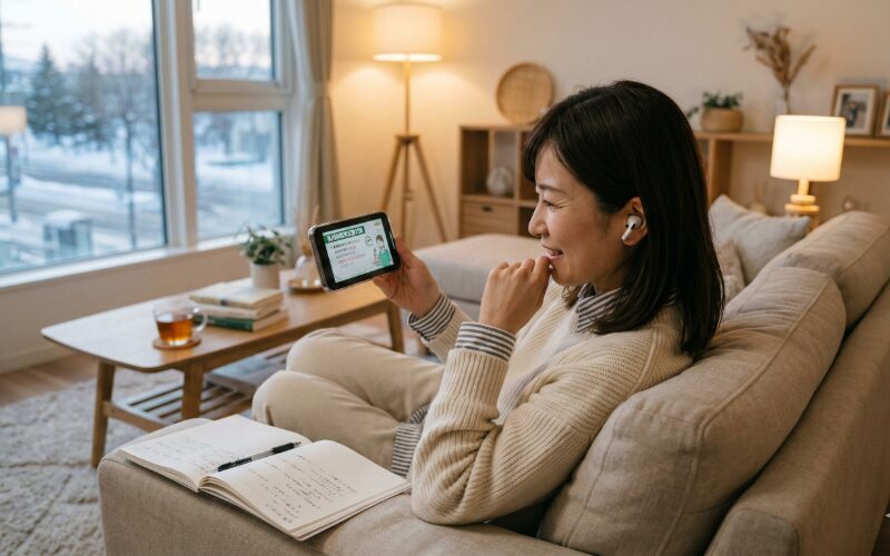 なぜこれが忙しい主婦に最強かというと、「スマホを開くだけで勉強が始まる」からです。テキストを取り出す必要も、机を用意する必要も、ノートを広げる必要もありません。