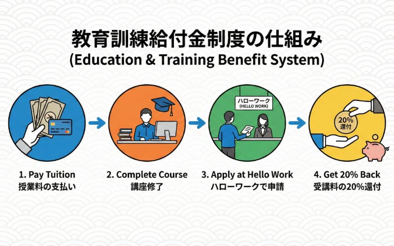 これは、国(ハローワーク)が受講料の20%(最大10万円)を現金でキャッシュバックしてくれる、最強の支援制度です。
