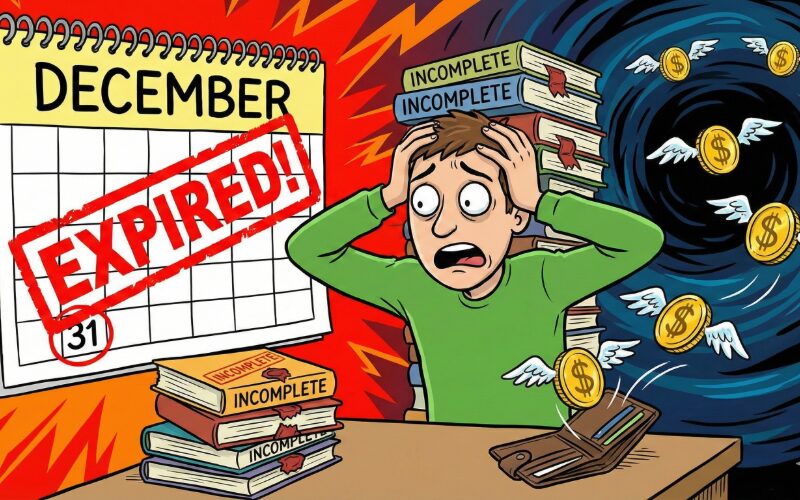 給付金をもらう条件は「講座を修了すること」です。途中で勉強を辞めてしまったり、最後の「修了テスト」の点数が足りなかったりすると、1円も戻ってきません。
