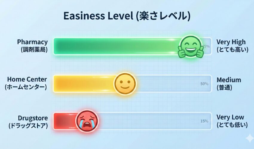 その理由は、ドラッグストアで誰もが抱える「3大苦痛」がすべて解消されるからです。