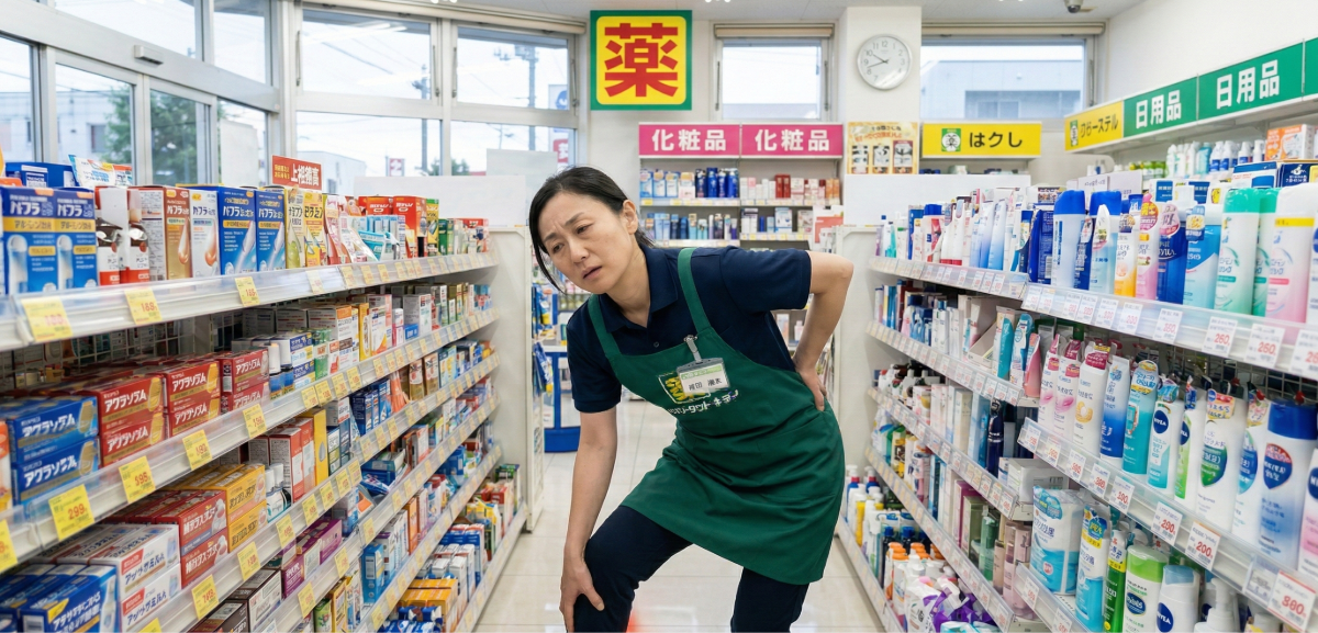 ドラッグストアで長年働いていると、ある時期から体に「職業病」とも呼べる症状が出始めます。特に多いのが次の2つです。